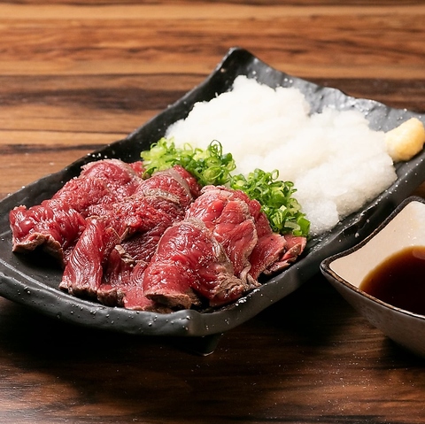 赤身の上質な肉質と、風味豊かな肉の味わいをお楽しみいただける「馬刺し」は、メイン料理としてはもちろん、お酒との相性も抜群な一品。一口噛むととろけるような食感と旨みが口いっぱいに広がる、ヤミツキになる美味しさです♪迷った時には盛り合わせで食べ比べをどうぞ◎馬刺し好きの方も初めて食する方も、ぜひ一度ご賞味あれ!