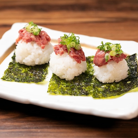 生肉料理の定番!「特選桜ユッケ 858円(税込)」がおすすめです。そのほか馬刺しを直火で焼いた「馬肉のタタキ」や当店名物「馬とろ生つくね」、フレンチ風に仕上げた「馬とアボカドのタルタルステーキ」など、馬肉の旨みを堪能できるメニューを多彩にご用意しております。どうぞお好みの一品をお選びください♪