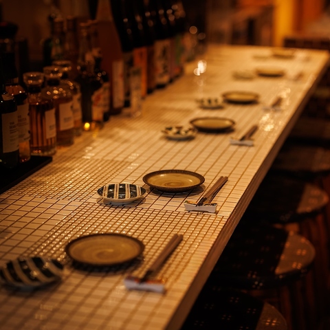 店舗入り口付近のタイル調カウンターはひと味違ったカジュアルな雰囲気◎