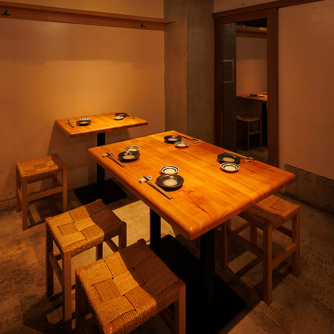 【リニューアルしてテーブル席を増設◎】装飾や小物が可愛いテーブル席や、タイル調のカウンターなど多彩なお席。職人たちの手仕事を見ながら、ゆったりとお酒と会話をお楽しみください。プライベート利用に最適な中二階個室、開放的なテラス席も完備。シーンに合わせた使い方ができる、粋なオトナの隠れ家酒場です。