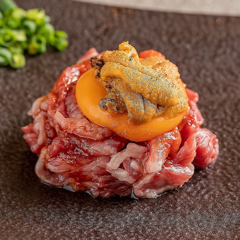 炙った雲丹と鮮度良いとろ肉を特製ユッケたれで仕立てました!トロける美味しさです!