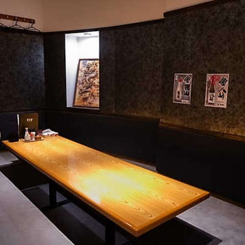 個室席は、プライベート感を大切にした落ち着いた空間です。温かみのある木材を使用したテーブルと心地よい照明が、リラックスした雰囲気を醸し出しています。友人や家族との特別な時間を楽しむのに最適で、周囲を気にせず、ゆったりとした会話が楽しめます。会食、お祝いなど多様なシーンでご利用いただけます。