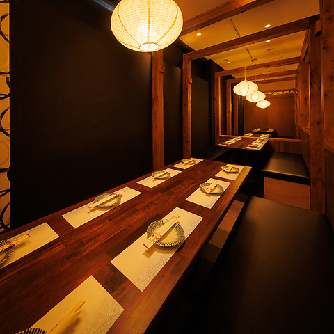 上品なのにくつろげる完全個室!シックな壁と落ち着いた照明で、飲み会や接待、女子会、合コンにもオススメ!アートパネルが空間にアクセントを加え、非日常感もたっぷり!静かにゆったり過ごせます!