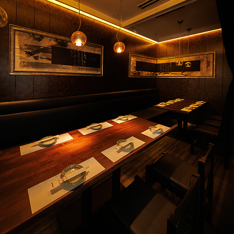 上品なのにくつろげる完全個室!シックな壁と落ち着いた照明で、飲み会や接待、女子会、合コンにもオススメ!アートパネルが空間にアクセントを加え、非日常感もたっぷり!静かにゆったり過ごせます!