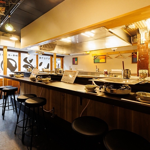 ≪もちろんおひとり様も大歓迎◎≫カウンター19席◆入口を入ると目の前に広がるのは厨房をぐるりと囲む、全19席のカウンター席です!当店スタッフが、ちりとり鍋や鉄板焼きの火の通り具合をしっかり確認いたしますので、ライブ感をお楽しみいただけます♪おひとり様はもちろん、デートや少人数でのご宴会にもぴったり◎