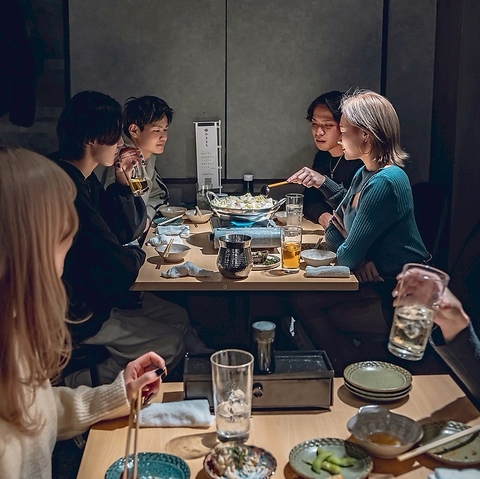 店内にはゆったり過ごせる個室もご用意しています。記念日やちょっと特別な日、周りを気にせずプライベートな時間を楽しみたい方にぴったり◎気の合う仲間や大切な人と、肩肘張らずにくつろげる空間で、美味しい料理とお酒を囲みながら楽しいひとときをお過ごしください。思い出に残る時間づくりをお手伝いします。