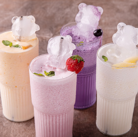 カフェ利用だけではなく、お酒を飲めるダイニングバー的な使い方もできる当店。本格香港・中国料理がお酒を飲むのもあり◎女子会で来るなら、映えドリンクもたくさんあります♪いちごミルクにはかわいい氷のクマちゃんが付き★