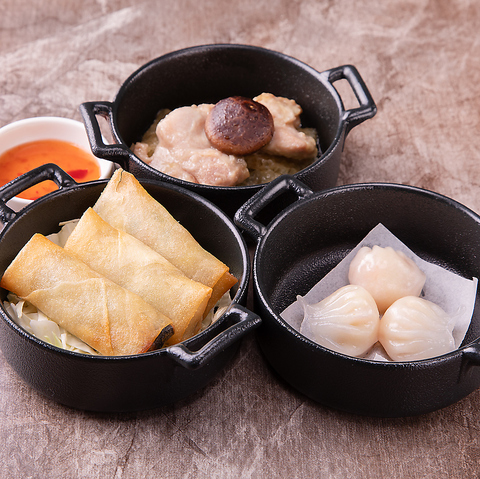 香港風おつまみで晩酌を。春巻や香港風海老餃子、椎茸と鶏の蒸し合わせなど。食事にもちょい飲みにも◎