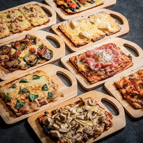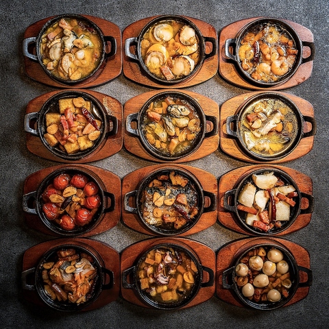 アヒージョ14種の圧巻ラインナップに加え、ピザは777円均一という嬉しい価格設定!竹鶴や八海山、季節限定ナチュラルワインが飲めるプレミアム飲み放題とも相性抜群。2軒目利用や軽く飲みたい時にもぴったりのライトバルメニューです。