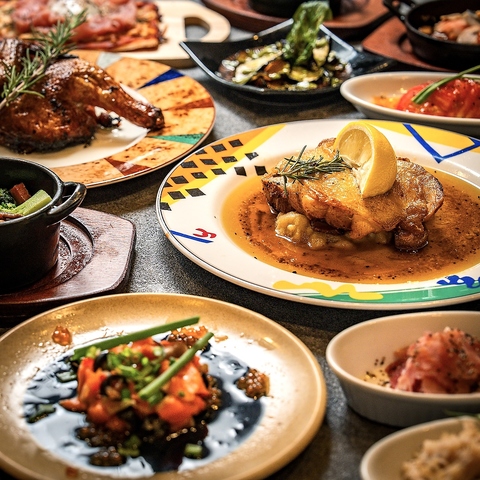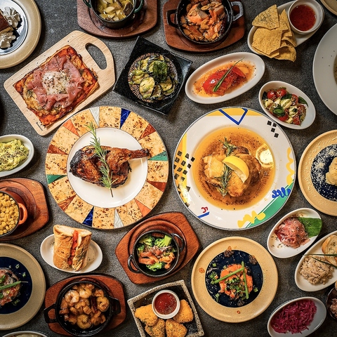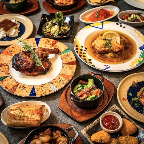シェフが手掛ける肉料理・魚介タパス・創作バル料理を種類豊富にご用意しております。牛カルビの雪割りチーズやロティサリー、アヒージョ14種、777円ピザなど“肉魚二刀流”で楽しめる逸品が揃うのが魅力。美酒と相性抜群のメニューが勢揃いです。