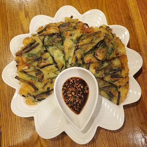 モチモチ食感は勿論の事、少し薄めの本格韓国のチヂミスタイルなのでサクッとした食感も楽しめます!