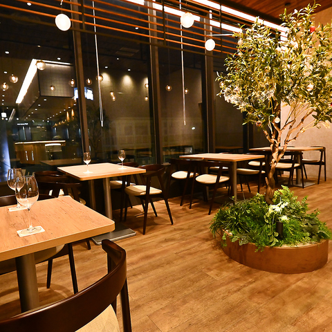 【落ち着いた店内で非日常を】お一人やカップル利用にお席もご用意♪通路も広いのでお子様連れ・ベビーカーも楽々♪女子会・パーティー・忘年会・新年会・歓送迎会など各シーンにご対応可能です♪