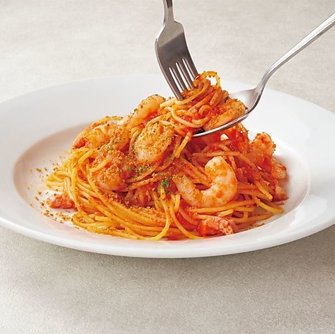 海老とニンニクが効いたアラビアータは唐辛子を効かせた本格。/ニンニクのパンチが効いてスパイシー!