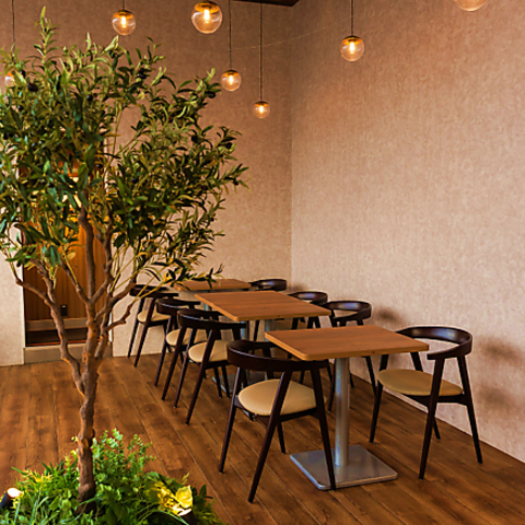 木製のぬくもりのあるテーブル席でごゆっくりお過ごしください。