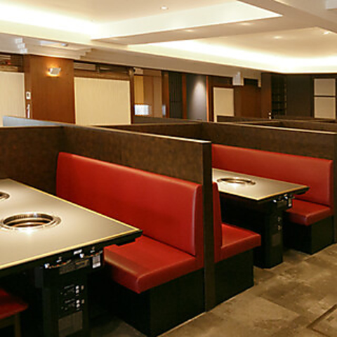 当店のテーブルのお席は広々と過ごしやすく、おいしいお肉をゆったりとご堪能いただけます!座席同士の間の壁が高めでプライベートな雰囲気が◎