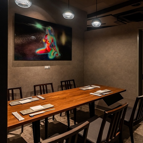 6名様用の半個室もございます。壁には絵画が掛かり、しっくりと馴染む造りとなっています。