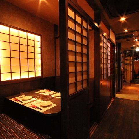 こだわりの店内は、扉付き個室を多数完備!落ち着きある大人の隠れ家空間をご提供致します。各種宴会にオススメの飲み放題付コースは4400円(税込)~ご用意!お手頃価格でご案内いたしますので、肩を張らずご来店ください。デートや接待でのご利用、団体様での歓送迎会、同窓会にもおすすめです。