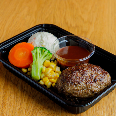 黒毛和牛100%で作ったハンバーグはこだわりです。粗挽き肉を使用することで肉肉しさを全面に引き出し、お肉の食感を楽しめる歯応えの後からガツンとくる肉の旨味が最高の瞬間に。粗挽き肉が含んだ潤沢な肉汁は噛む度に溺れるかのような体験をさせてくれます。日本が誇る高品質な黒毛和牛を使用した黒毛和牛100%ハンバーグをご賞味ください。