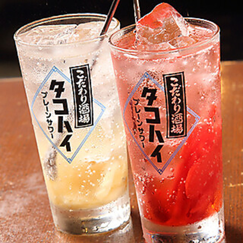 紅しょうがやガリ入りの“タコハイ”は、さっぱりしつつもクセになるオリジナルドリンク。注ぎ足しできる「追い酎」も人気で、思い思いに楽しめるのが魅力です。定番の生ビールや、各種ハイボール、レモンサワーなどのサワー系ももちろん充実♪
