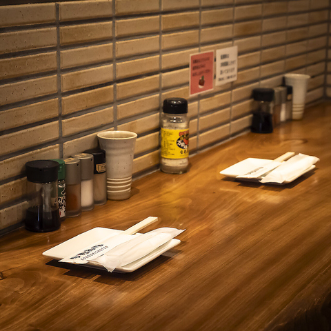 お一人様でもお気軽にお立ち寄りいただけるカウンター席は、スタッフの手際の良さを間近で楽しめる特等席。目の前で次々と焼き上げられる焼き鳥を眺めながらグラスを傾けるのもオツなもの。