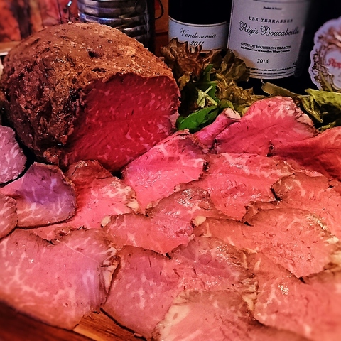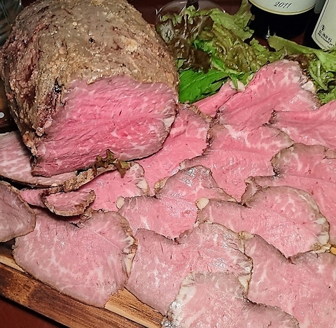 当店自慢のローストビーフは、赤身の旨味が凝縮された逸品です!じっくり焼き上げたお肉は、お口の中でとろけるような食感。お酒との相性も抜群です!お食事の後の〆に、お口直しに、お一人様でも、お仲間と一緒にお楽しみいただけるよう、全力で取り組んでいます。