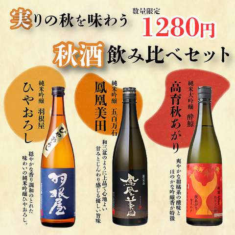 | ★ 【焼酎】 | いいちこ(麦)/二階堂(麦)/黒霧島(芋)/白水(米)/鍛高譚(しそ)/紅乙女(胡麻)/吉兆雲海(そば)/栗天照/れんと(黒糖)/残波(泡盛) |
