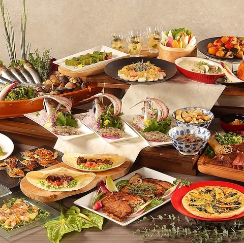 ~千葉の恵みを一堂に楽しむ 千産千消グルメセレクション~千葉の海と大地が育んだ旬の食材をふんだんに使用した、彩り豊かなビュッフェ。九十九里の塩レモンジュレで爽やかに仕上げた魚介のマリネ、成田名物“鉄砲漬け”ラヴィゴットソースのオレンジ風味チキンなど、多彩な千葉県の恵みをお楽しみいただけます。