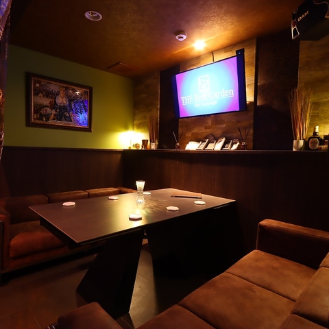 『THE Rest Garden』では、落ち着いた照明とスタイリッシュで重厚感あるインテリアが織りなす、ちょっと贅沢な雰囲気をお楽しみいただけます。日常を忘れさせる心地よい空間で、友人や大切な人と特別なひとときをお過ごしください。心を満たす美味しい料理とドリンクを片手に、贅沢な時間を心ゆくまでご堪能いただけます。ぜひご利用ください!