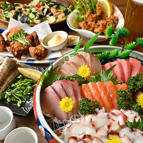 2H飲み放題付コースになります。旬の魚をふんだんに使用した刺し盛と定番メニューで宴会にピッタリなコースです♪
