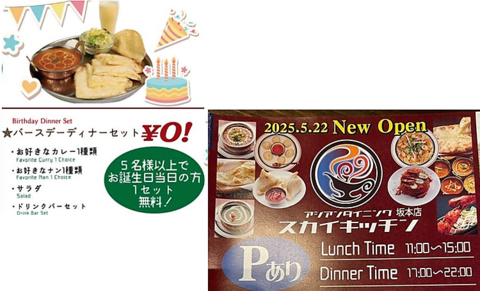5名様以上でご来店のお客様かつお誕生日当日の方は1セット無料になるバースデーセットをご用意しています!