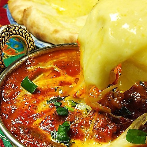 ふわふわモッチモチのチーズナンセット!日本人向けに食べやすくアレンジしており、どのメニューも食べやすく、とても美味しいと好評!ナンもお代わりでき、かつ1枚でかなりのボリュームがあり食べ応えがあります!初めてのインドカレーにピッタリなお店です。