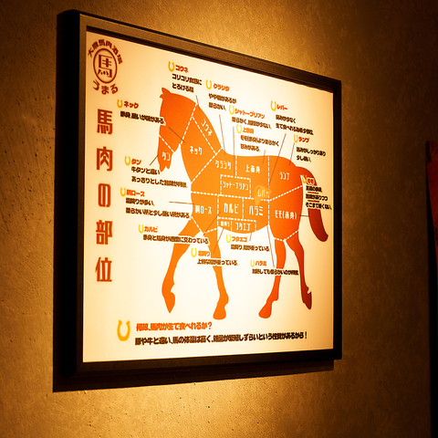 馬肉一筋!当店では丸ごと仕入れた馬肉をお店でさばいてご提供致します。上質な赤身やコウネにシャトーブリアンやレバーなど変わり種までご用意!名物の寿司やユッケにステーキやしゃぶしゃぶなど充実の馬肉料理をお楽しみいただけます!