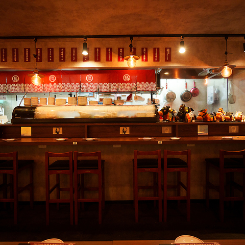 【お一人様も大歓迎のカウンター席】臨場感あふれるオープンキッチンはうまるの楽しみポイント!馬肉を使った和洋バラエティに富んだおつまみ・小鉢など目の前での創作はぜひ見て頂くと楽しく飲食してもらえると思います!!
