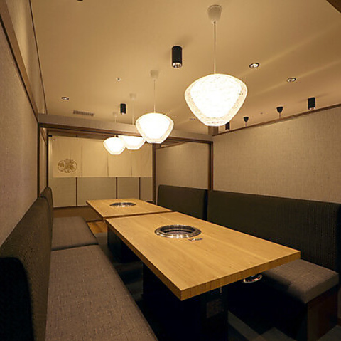 柔らかい照明やゆったりとしたソファが心地良く、リラックスしながらお食事をお楽しみいただけます。テーブル席はプライベート感を大切にし、広々としたテーブルを囲みながら、和やかな時間が過ごせる空間となっております!!落ち着いた雰囲気なので幅広いシーンにご利用可能◎こだわりのお肉とお酒とともに、心温まる時間をお過ごしください!