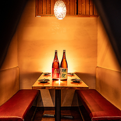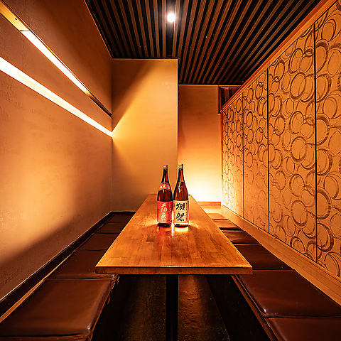 《少人数個室》当店では、ゆったりと過ごせる少人数向けのお席をご用意しております。ご友人との食事や恋人とのデート、仕事帰りの一杯にも最適な落ち着いた空間です。完全個室もあり、周囲を気にせず会話や食事を楽しめます。静かで居心地の良い雰囲気の中、こだわりのお料理とお酒をゆっくりとご堪能ください。