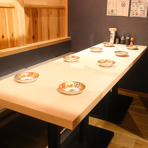木の温もりが溢れる店内は2名様~最大100名様まで大小様々なタイプの個室席をご用意しております♪個室空間は、京橋駅での接待や女子会、歓迎会や送別会など各種宴会を演出致します♪テーブル席や掘りごたつタイプの個室空間はお子様連れでも安心の広々とした個室空間となっております♪合コンや街コンの相談も◎個室居酒屋
