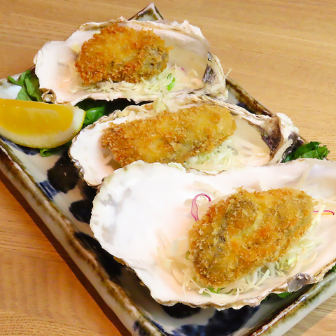 生牡蛎はSS~Lサイズの4種類にお得な12個入り(SとMサイズ)、他にも磯焼きや生牡蛎フライ、牡蠣のカンカン焼きと素材の魅力を引き出した繊細な牡蛎料理が楽しめます♪