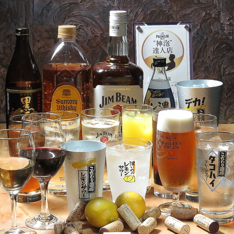| サワー | ・レモン・トマト・青りんご・巨峰・シークワーサー・ピーチ・カシス・タコハイ・男梅 |