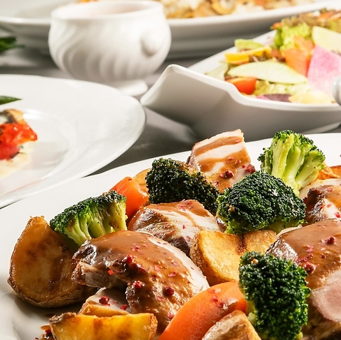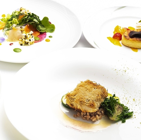 四季折々の旬の食材を全国各地から厳選し、その持ち味を最大限に引き出すことにこだわっています。シェフが培った熟練の技で、素材の鮮度と品質を活かし、見た目も美しい一皿へと昇華させます。五感で味わう至福の美食体験をお約束いたします。