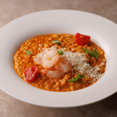 海老トマトクリームのリゾットは、海老の旨味がガツンと感じる一品♪