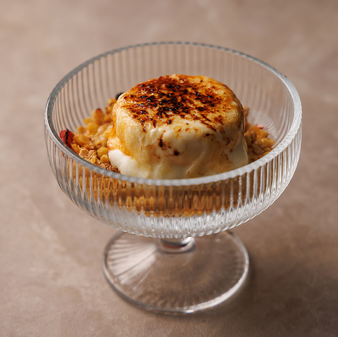 スペイン発祥の洋菓子「カタラーナ」を、当店独自のアレンジを加えてご用意いたします♪表面を炙ることでパリパリ食感とほろ苦い甘みのキャラメリゼを堪能でき、濃厚なカスタードと一緒にお召し上がりいただくことで、なめらかでコクのある味わいがお楽しみいただけます◎