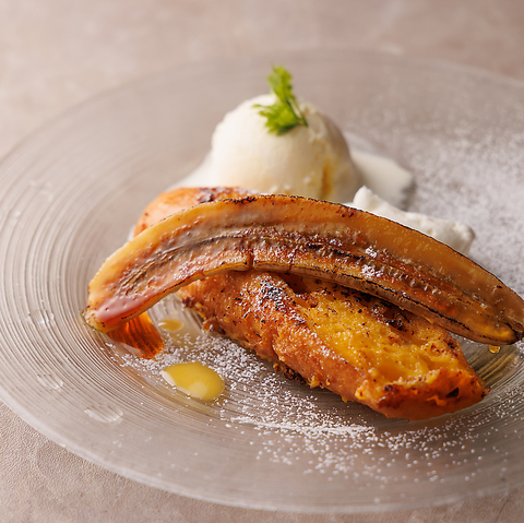 バゲットにしっかり染み込ませたフレンチトースト。丁寧に焼き上げ、焦がしバター香る優しい仕上げに♪直前で焼き上げるキャラメリゼがバニラアイスと相性抜群!口の中で至福のひと時を◎