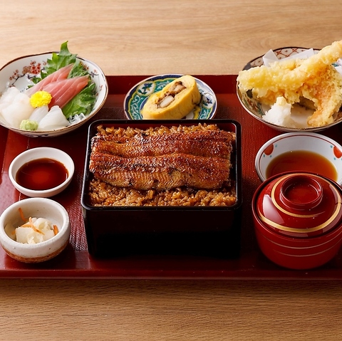 創業100年老舗米屋監修の独自うなぎ専用米。鰻に合うように計算されたブレンド米をタレをかける事を考慮し、硬めに炊き上げます。京都老舗だし店と共同開発した独自配合の自家製タレとの相性抜群。たまり醤油をベースとした豊かな風味と広がる香ばしさが、うなぎの濃厚な旨みと良質な脂に重なり合い、芳醇で奥深い味わいを奏でます。