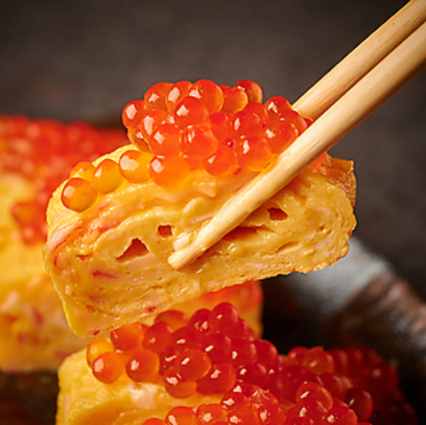当店イチオシ【いくらたっぷりのだし巻き卵】贅沢にいくらがのった看板商品!だしの効いた玉子焼きとの相性も◎!写真映えすること間違いなし。【ガーリックチーズ×ハラミステーキ】【ローストビーフ】【ラム肉の香草グリル】【ミルフィーユハムカツ】【SAの牛タン串】、などお酒のお供になる商品をたくさんご用意しております!