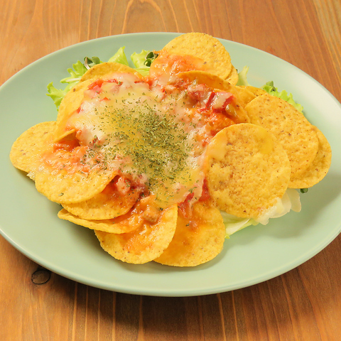 レタスとナチョスのパリパリ食感ととろけるチーズがマッチした一品。食べる手は止まらないやみつきナチョスです!