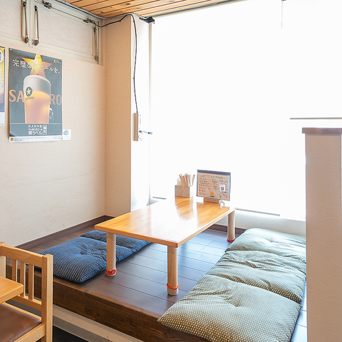 小上がりの座敷は、4~5名様向けでお子様連れの方にも最適!家族や友人との時間を、ゆったりとお楽しみいただけます◎小上がりの心地よい空間は、まるで自宅にいるかのような居心地の良さ!お子様の成長を見守りながら、家族の絆を深める素敵な時間をお楽しみいただけます。