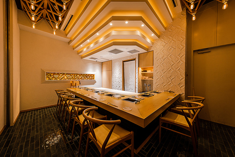 木の温もり溢れるカウンター席は、1人1台の無煙ロースター付きなので匂いを気にせず快適にお過ごしいただけます。一皿一皿こだわり抜いた料理を心ゆくまでお愉しみください。
