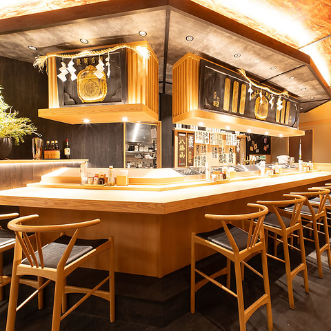 落ち着いた雰囲気が漂うカウンター席で、旬の食材を使用した料理と種類豊富なお酒をまったり楽しむことができます。心地よい距離感が魅力で、一人飲みやデートに最適です◎ゆったりとした空間で、心身ともに癒される時間をお過ごしください。