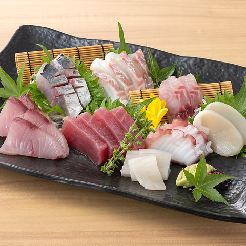 全国の漁業から日々仕入れる鮮魚を、板前が腕によりをかけて捌きます。季節ごとに変わる旬の素材を使用し、見た目にも美しい盛り付けでお届けします。地酒と一緒にお召し上がりください。※二人前から承ります。