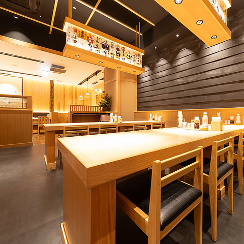 落ち着いた雰囲気のカウンター席では、旬の食材を使用した美味しい料理と、種類豊富なお酒をまったり楽しむことができます。他のお客様との距離感も心地よく、一人飲みやデートにもぴったり◎リラックスした雰囲気の中で、心温まるひとときをお過ごしください。